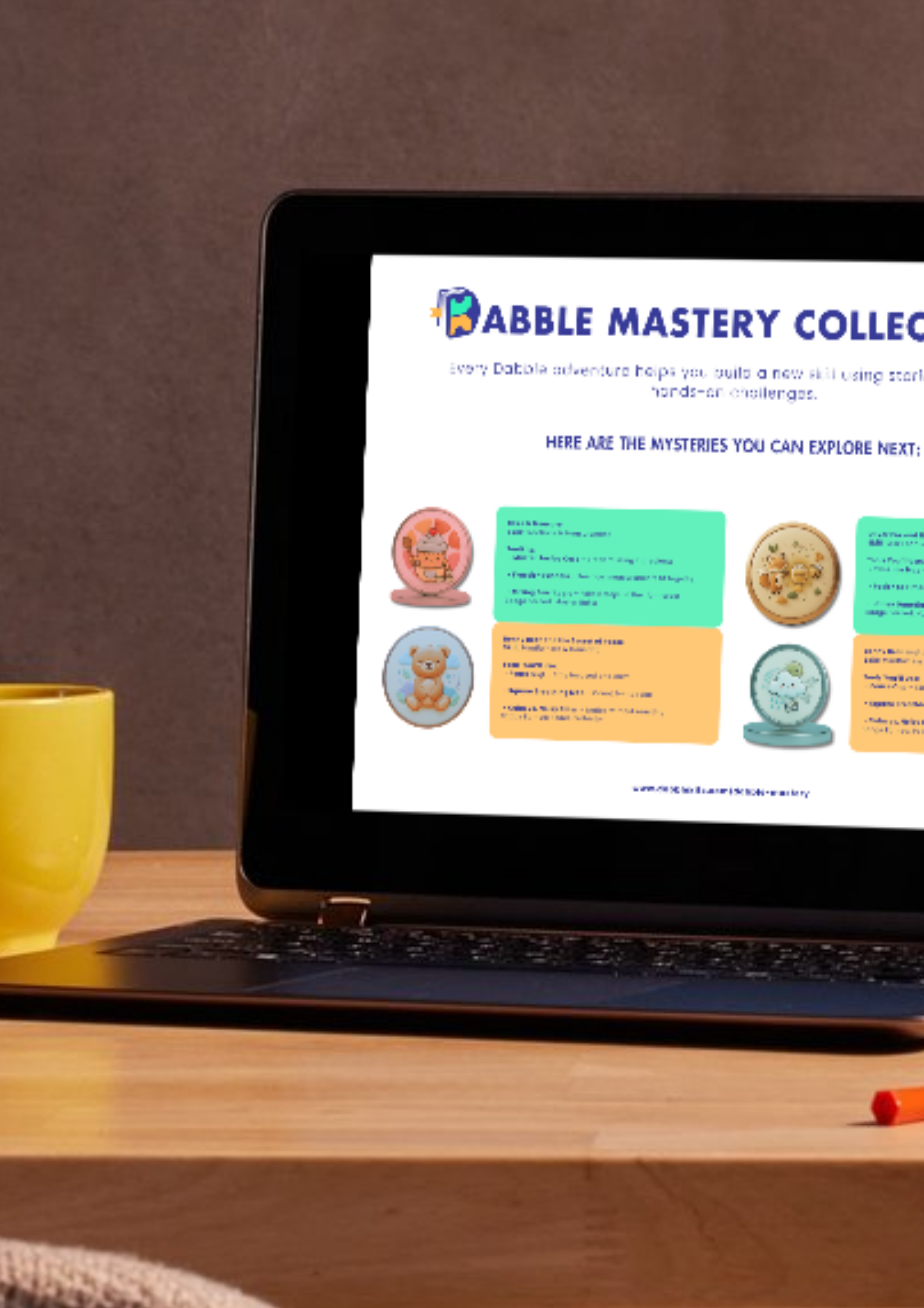 Unlock challenges, rewards, and badges as kids complete activities across our Kits. Track achievements, collect all 4 Dabble Mastery badges, and celebrate skill mastery while encouraging ongoing engagement.