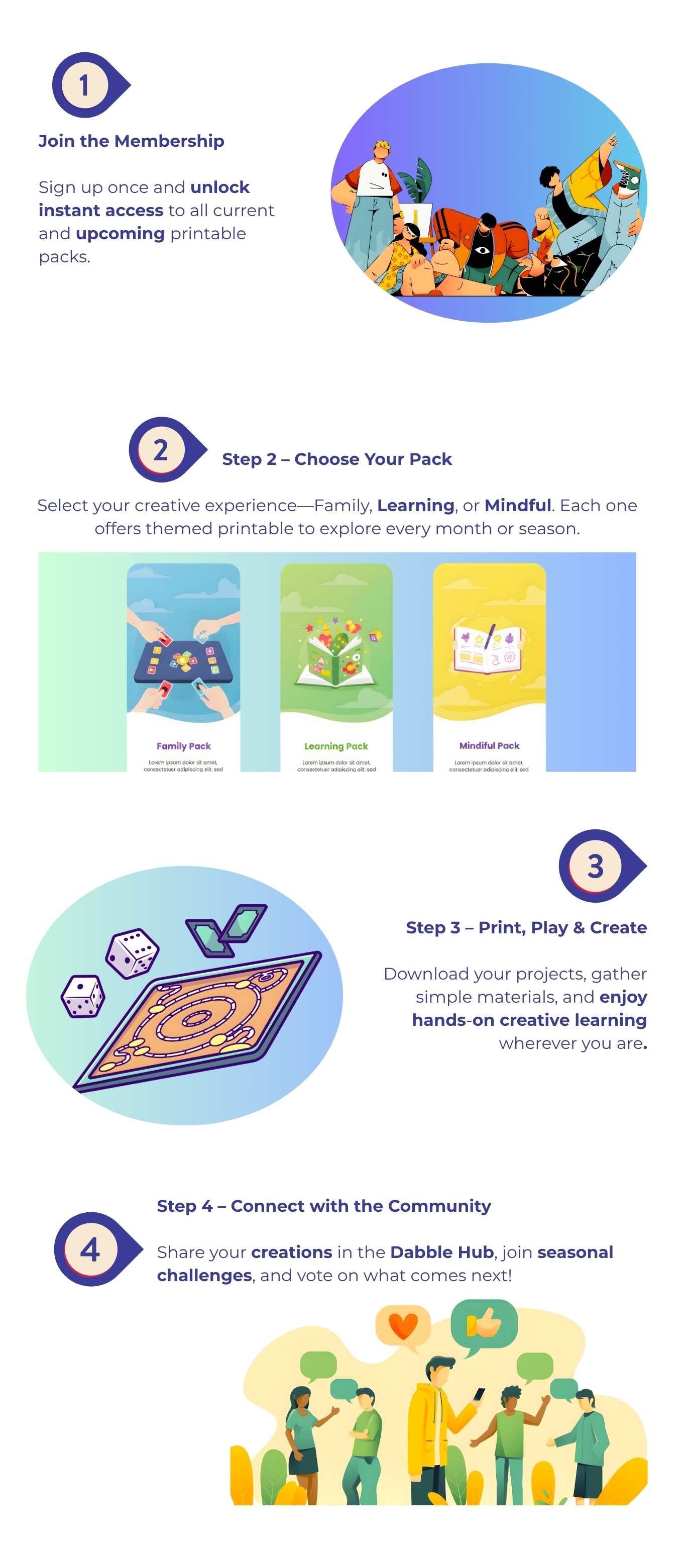 Membership gives you full access to all our printable packs—Family, Learning, and Mindful (coming soon)—plus bonus printables, early releases, and community challenges.