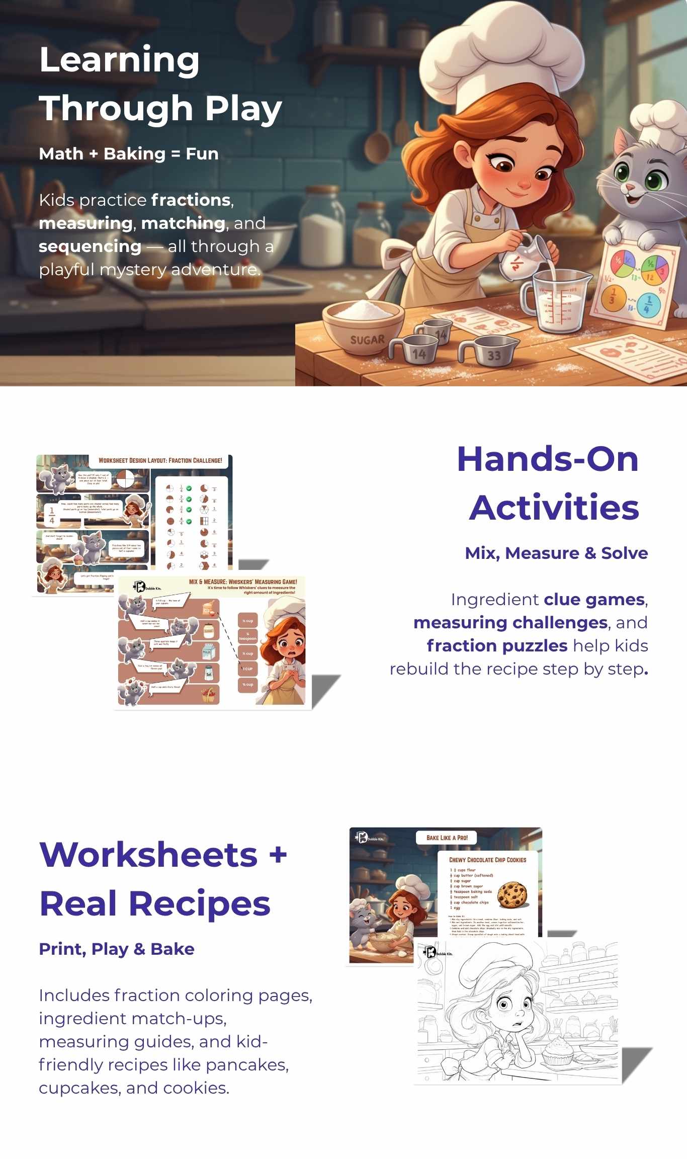 A hands-on kit where kids solve math clues while measuring and mixing ingredients to bake tasty treats.
