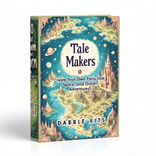 Tale Makers Adventure is a Map Storybook, where your imagination, creativity, and storytelling come to life! Inside this adventure kit, you will find everything you need to create, narrate, and display your own magical stories. From heroes and villains to enchanted maps and whimsical worlds, this book is designed to let families and friends of all ages step into the storyteller’s role.